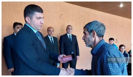 Keys to new homes were handed over to another group of former internally displaced persons who arrived in Tazabina village of the Khojaly district.