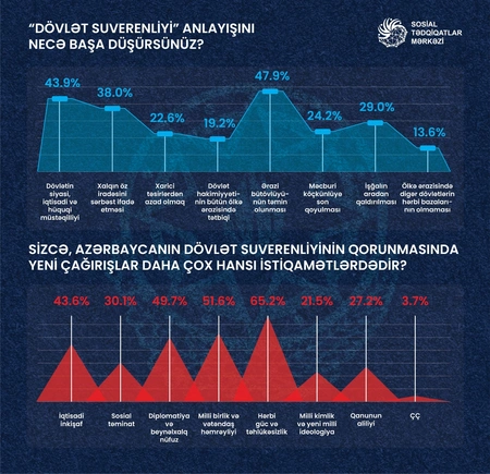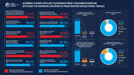 Overall, the survey shows that, in the public consciousness, the outcomes of the 44-day war and the restoration of sovereignty are seen not only as the liberation of territories but also as milestones in strengthening Azerbaijan"s international standing, shaping a victorious national identity, and enhancing the country"s strategic potential.