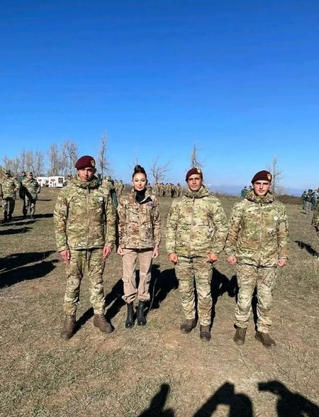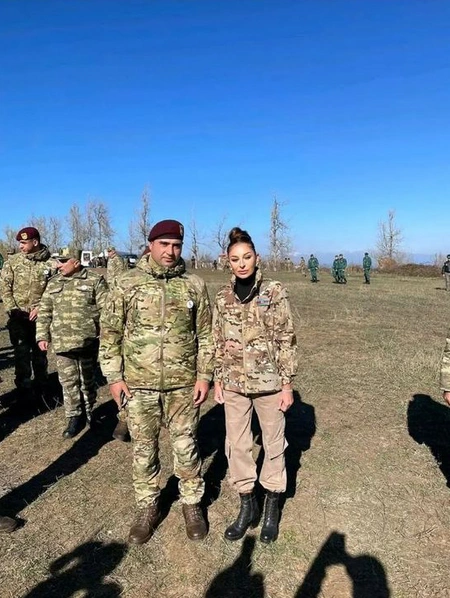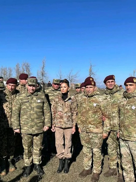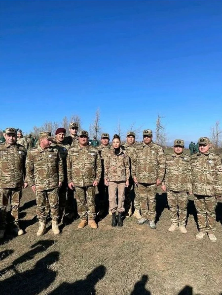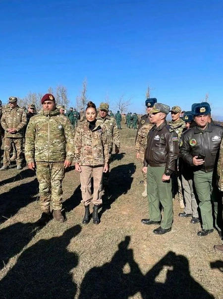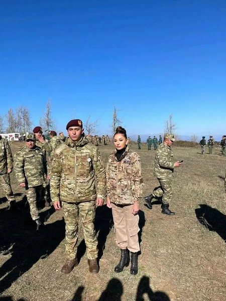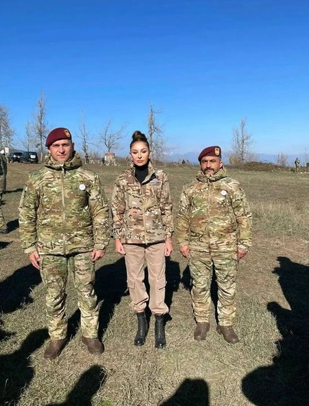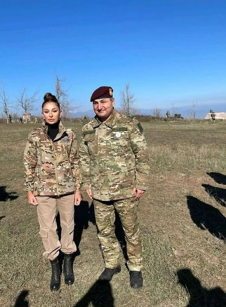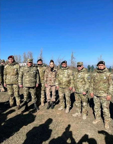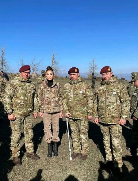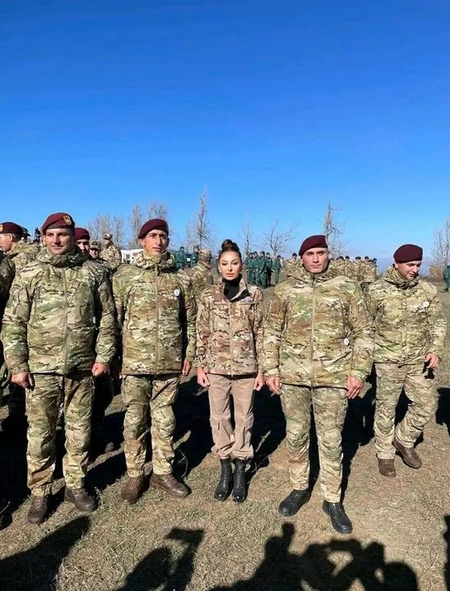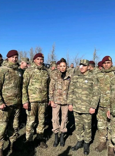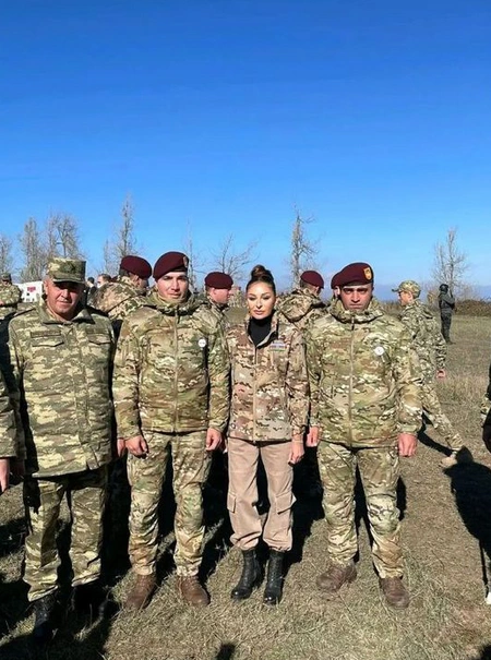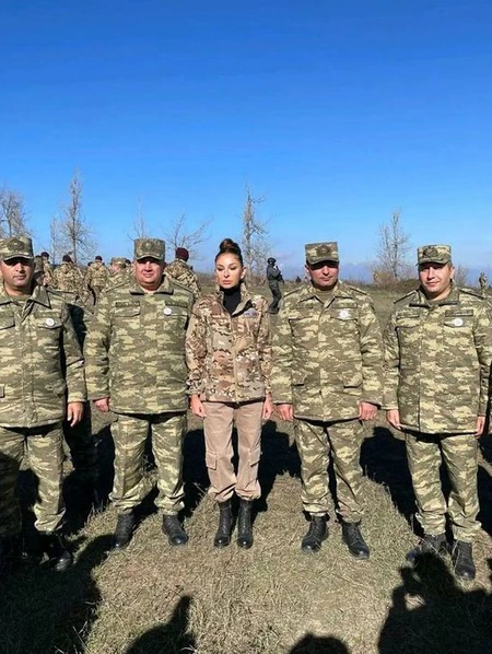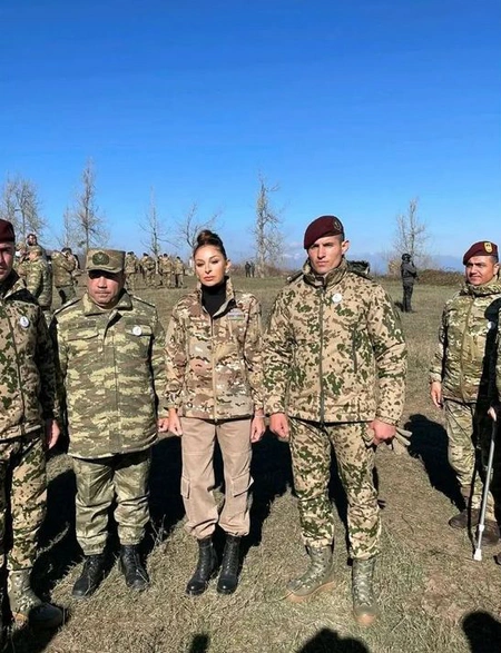 "08.11.2021. One of the happiest days in my life! With the brave soldiers and officers of the Armed Forces of the Republic of Azerbaijan on the first anniversary of the Victory Day on the Jidir plain! Thank you very much! May the Almighty protect you!"