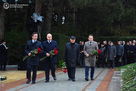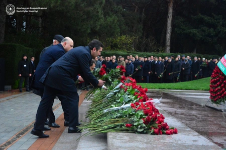 The leadership of the Ministry of Foreign Affairs (MFA) visited the Alley of Honor in connection with the memorial day of National Leader Heydar Aliyev, the architect and founder of the state of Azerbaijan, Report informs, citing the Ministry of Foreign Affairs.