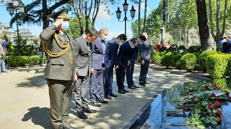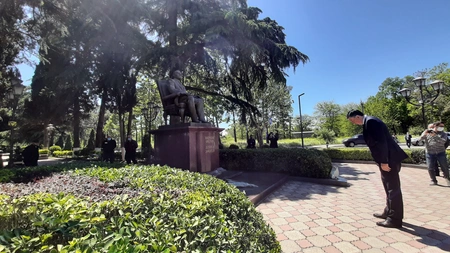Report's local bureau informs that Azerbaijan's Ambassador in Georgia Faig Guliyev, embassy and SOCAR Energy Georgia employees, Azerbaijani entrepreneurs, and public representatives visited the park after the National Leader and put flowers at his bust.