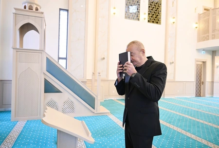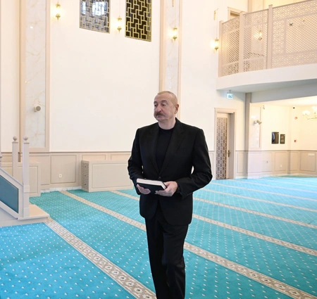 President Ilham Aliyev was also informed about the mosque constructed in the settlement. The foundation stone for the mosque was laid by the head of state in October 2021.