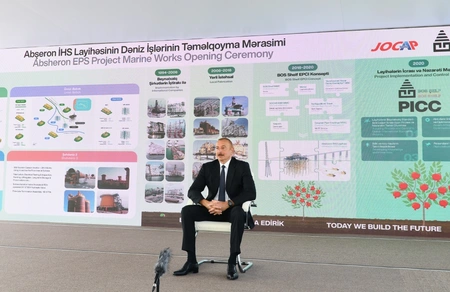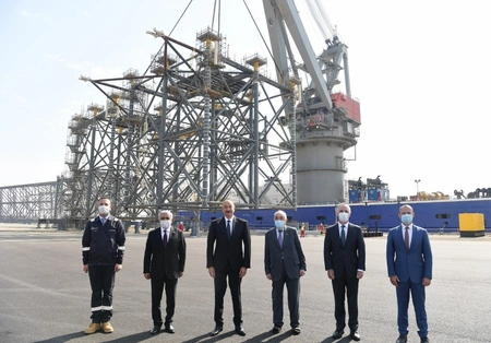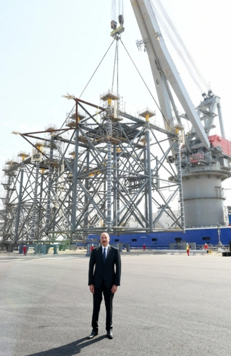 President of the Republic of Azerbaijan, Ilham Aliyev, has attended a groundbreaking ceremony of the offshore operations of the Absheron field at the Heydar Aliyev Baku Deep Water Jackets Plant, Report says.