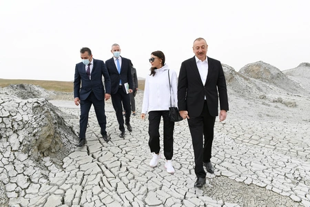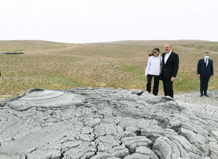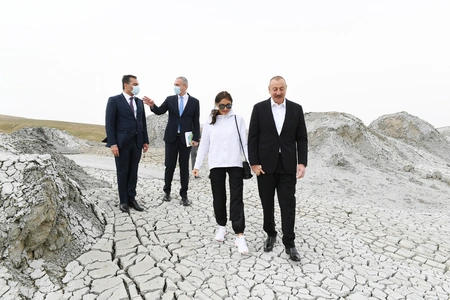 President Ilham Aliyev and First Lady Mehriban Aliyeva attend groundbreaking ceremony for Mud Volcanoes Tourism Complex