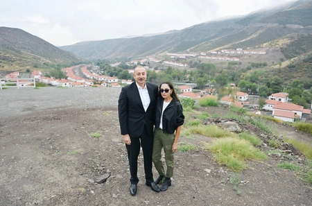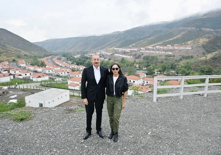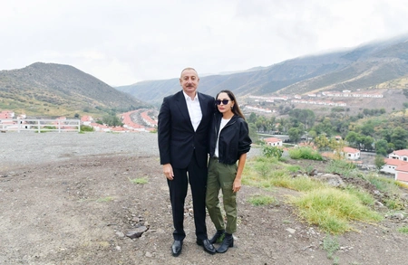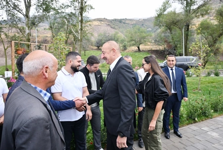 President Ilham Aliyev and First Lady Mehriban Aliyeva get familiarized with works done in village of Zabukh of Lachin and meet with villagers