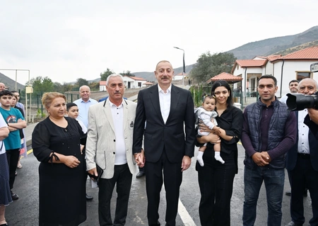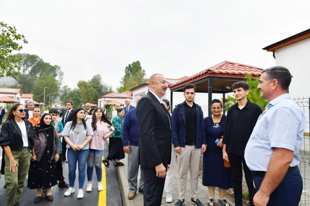 President Ilham Aliyev: I am sure that you will see how beautiful these conditions are. The key thing is that you will live on your native land, live on liberated lands, and live here with pride.