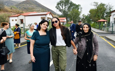 President of the Republic of Azerbaijan Ilham Aliyev and First Lady Mehriban Aliyeva have examined the works accomplished in the village of Zabukh of the Lachin district and met with villagers here, Report informs referring to AzerTag.