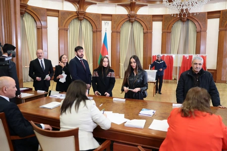 On February 7, President of the Republic of Azerbaijan Ilham Aliyev, First Lady Mehriban Aliyeva and their family members voted at polling station No. 14 of electoral district No. 122 in Khankandi, Report informs, citing the Press Service of the President of Azerbaijan.
