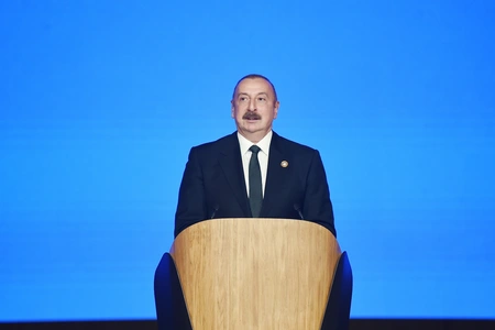President of the Republic of Azerbaijan, Chairman of the New Azerbaijan Party Ilham Aliyev made a speech at the event.