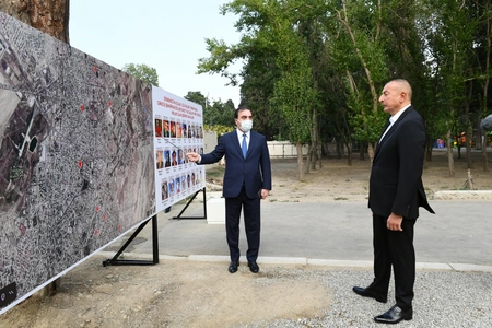 Report informs, citing AzerTag, that the head of state viewed the crime scenes caused by Armenia's irresponsible missile attacks against innocent civilians and energy infrastructure.