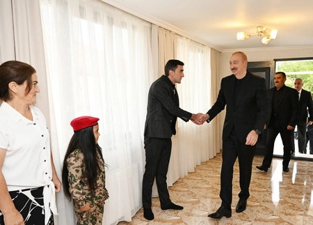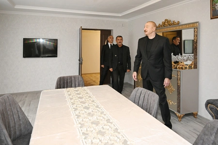 The head of state visited the home of Rasim Alakbarov, one of the residents who relocated to the village.
