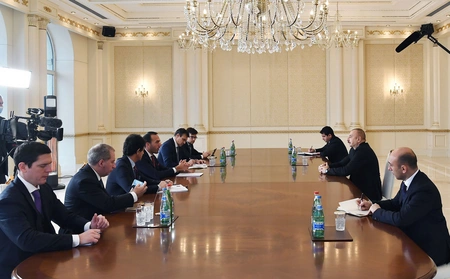 President of Azerbaijan Ilham Aliyev has today received a delegation led by the Italian Minister of Foreign Affairs and International Cooperation, Co-Chair of the Joint Intergovernmental Commission on Economic Cooperation between Azerbaijan and Italy Manlio Di Stefano, Report says, citing Press Service of the President of Azerbaijan.