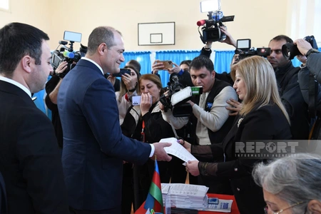 Razi Nurullayev, the presidential candidate of the National Front Party, participated in the voting in the snap presidential elections.