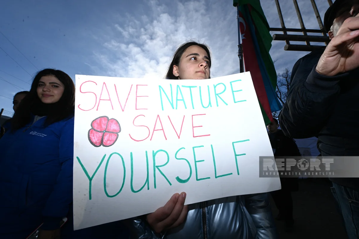 The action participants are chanting slogans related to the illegal exploitation of mines, environmental terrorism, disruptive, provocative, looting activities of Ruben Vardanyan, and removal of the remnants of the Armenian army from the territories of Azerbaijan.