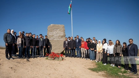 As part of the visit, participants traveled to the village of Garakhanbayli in Fuzuli District, where the first battles of the war took place, and paid tribute at a memorial erected in honor of fallen soldiers.
