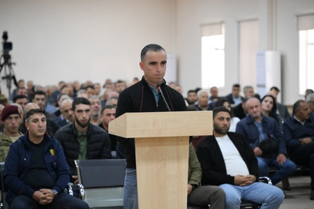 Victim Maharram Karimli stated in his testimony that he was wounded in the arm in the Aghdam-Aghdara direction due to sniper fire from the enemy. Responding to a question from Ruben Vardanyan, Karimli said he recognized Vardanyan through social media.
