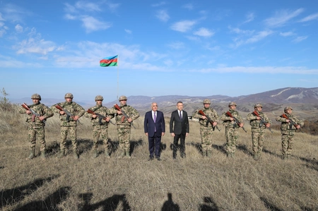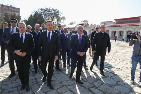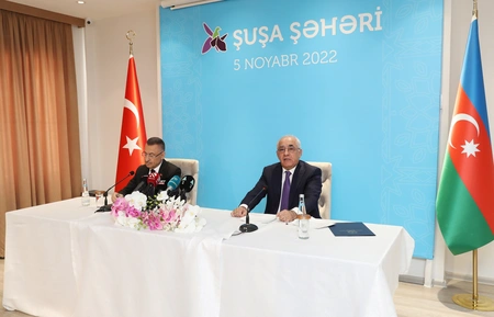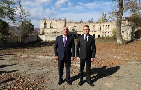 Asadov and Oktay visited the cultural monuments and sights, including Shusha city square, Yukhari Govhar Agha mosque, Jidir plain, and Molla Panah Vagif's mausoleum complex in Shusha.