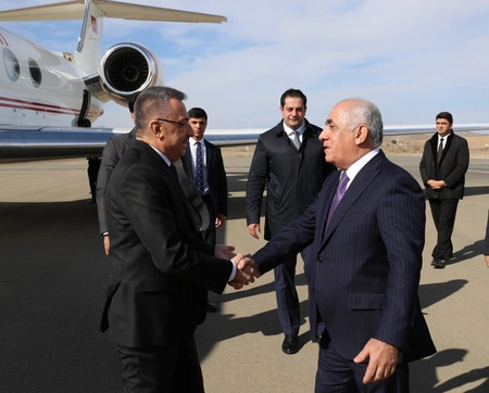 Prime Minister of Azerbaijan Ali Asadov welcomed Vice President of Turkiye Fuat Oktay at the Fuzuli International Airport, Report informs, citing the Cabinet of Ministers.