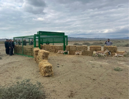As part of the project "Protection, reintroduction and restoration of historical habitats of gazelles within the territory of the Republic of Azerbaijan," 11 gazelles have been released into the Ajinohur steppe within the newly established Akhar-Bakhar National Park, Report informs.