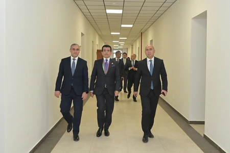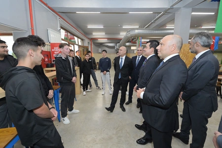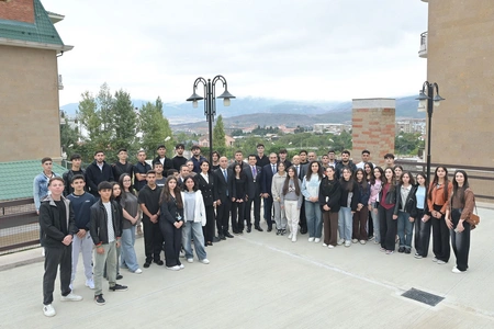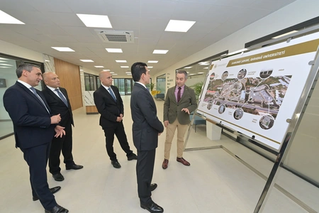 He then visited Karabakh University, where he viewed newly constructed academic buildings, classrooms, laboratories, and dormitory facilities. During a meeting with students, discussions were held on the university's support for their academic activities, followed by group photos. University rector Shahin Bayramov briefed the guest on the institution's operations.
