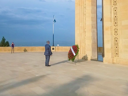 The guest then went to the Alley of Martyrs and visited the graves of the heroic sons of the Motherland, who sacrificed their lives in the struggle for the independence and territorial integrity of the country, laid a wreath at the monument of Eternal Flame.
