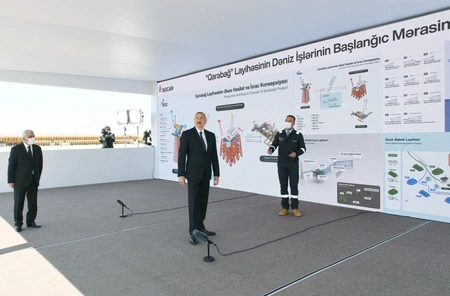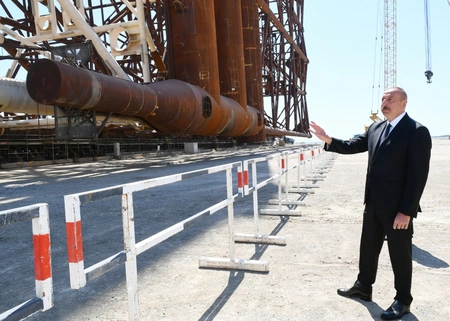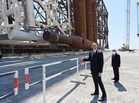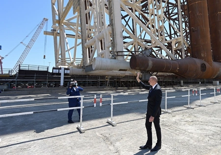 Today, President of Azerbaijan Ilham Aliyev has inaugurated the support block of the Karabakh field to the sea at the Heydar Aliyev Baku Deepwater Jackets Factory.