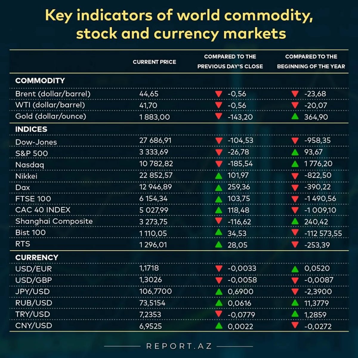 Key indicators of world commodity, stock and currency markets (12.08.2020)