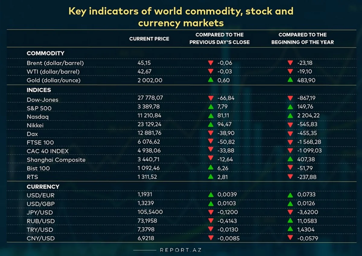 Key indicators of world commodity, stock and currency markets (19.08.2020)