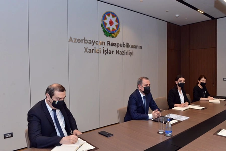Report informs, citing Azerbaijan's Ministry of Foreign Affairs, that the Minister briefed his interlocutor on the current situation in the region, especially the recent tensions on the border, the steps taken by Azerbaijan in connection with the implementation of the trilateral statements, the threat of landmines in the liberated areas and their consequences. The Minister thanked the United Kingdom for its support to Azerbaijan's demining activities in the liberated areas.