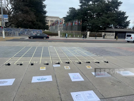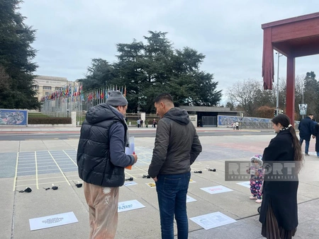Organized by the Cultural Center of Azerbaijanis in Switzerland, our compatriots gathered in front of the Geneva office of the United Nations. The goal of the participants of the action is to call on the European community to request Armenia to provide maps of minefields in Karabakh. As part of the action, trainings called Mine Field are held and leaflets are distributed to the residents, giving detailed information about the mining of Azerbaijani territories by Armenia.