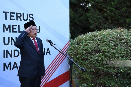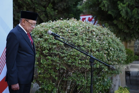 After raising the flag, the ceremony continued with a minute's silence in memory of the Indonesian heroes who sacrificed their lives for the independence of Indonesia in 1945.