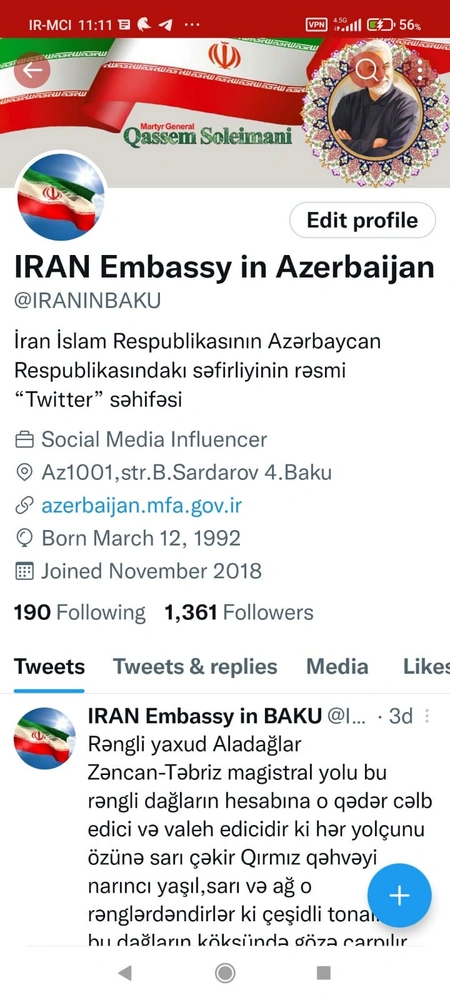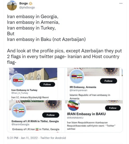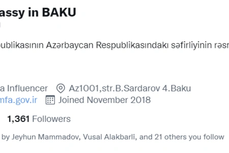 Report was told in the diplomatic mission of this country that now the official Twitter page of the Iranian Embassy in Azerbaijan is called “Iran Embassy in Azerbaijan.”