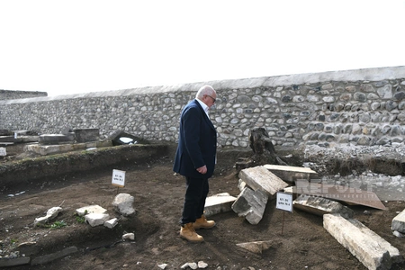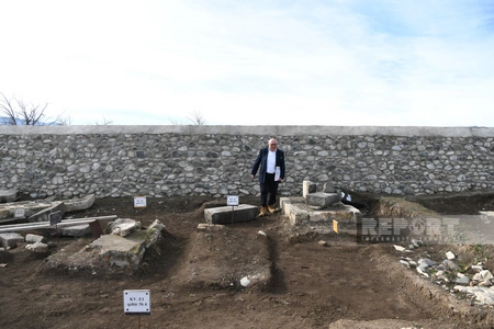 He gave detailed information to the journalists about the initial state of the ancient cemetery located in the complex and the state after the research was conducted.