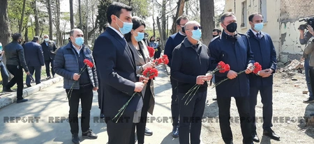 They toured the area destroyed due to the shelling of Ganja by the Armenian Armed Forces.