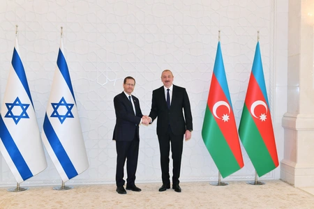 Azerbaijani President Ilham Aliyev and First Lady Mehriban Aliyeva met Israeli President Isaac Herzog and his wife Michal Herzog.