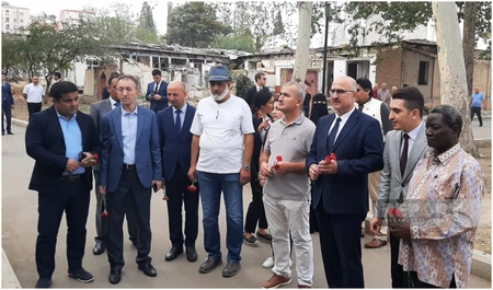 Later, the guests conducted on-site monitoring of the Imamzada religious complex, which was damaged as a result of rocket attacks by the Armenian armed forces.