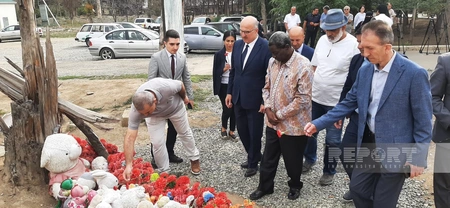 The delegation led by the Chairman of the Independent Permanent Human Rights Commission (IPHRC) of the Organization of Islamic Cooperation (OIC), Muhammad Lawal Suleiman, who is on a visit to Azerbaijan at the invitation of Ombudsman Sabina Aliyeva, carried out the next joint fact-finding mission in the city of Ganja, which was subjected to rocket attacks by the Armenian armed forces during the 44-day Patriotic War, Report informs.