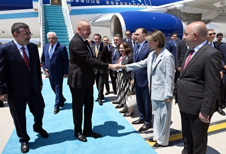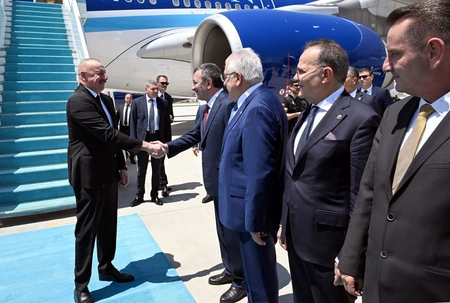 President Ilham Aliyev was welcomed by Cevdet Yilmaz, Vice President of Türkiye, and other officials.