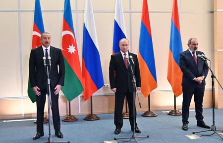 Following the trilateral meeting among President of Russia Vladimir Putin, President of Azerbaijan Ilham Aliyev and Prime Minister of Armenia Nikol Pashinyan, the Russian President, the Azerbaijani President and the Armenian Prime Minister have made press statements, Report informs referring to AzerTag.