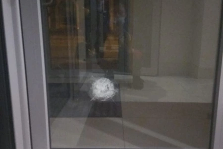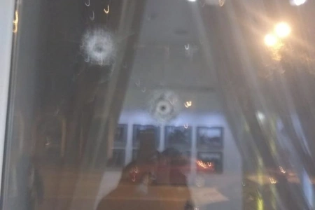 No one was in the office during the attack, but the window and entrance door were damaged.