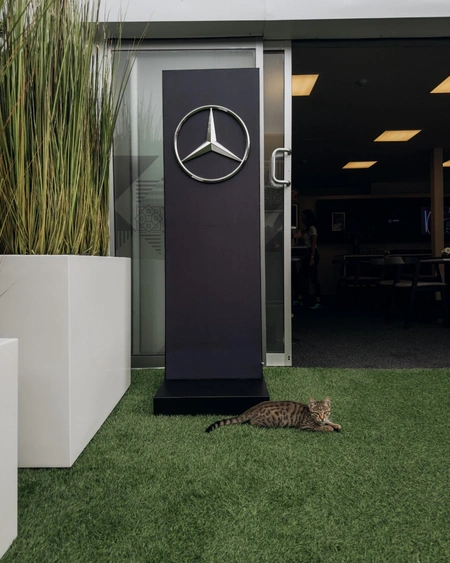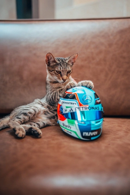 Mercedes went so far as to invite the newcomer into its hospitality suite, where it posed like a seasoned celebrity beside the helmets of George Russell and Kimi Antonelli. As a playful touch, the team even presented the cat with a miniature helmet.
