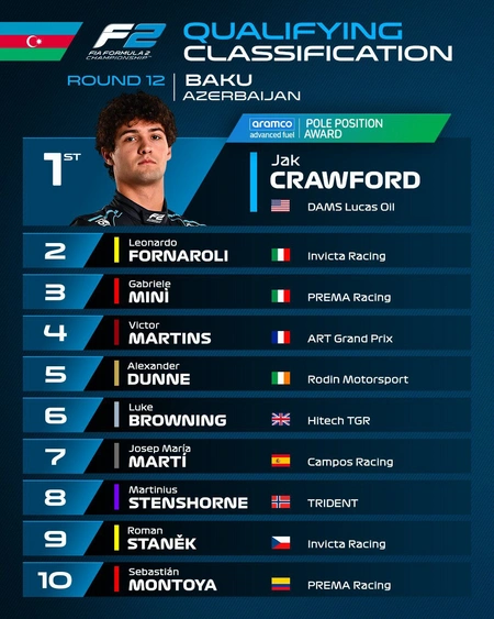 The qualifying session of the Formula 2 Azerbaijan Grand Prix in Baku has concluded.
