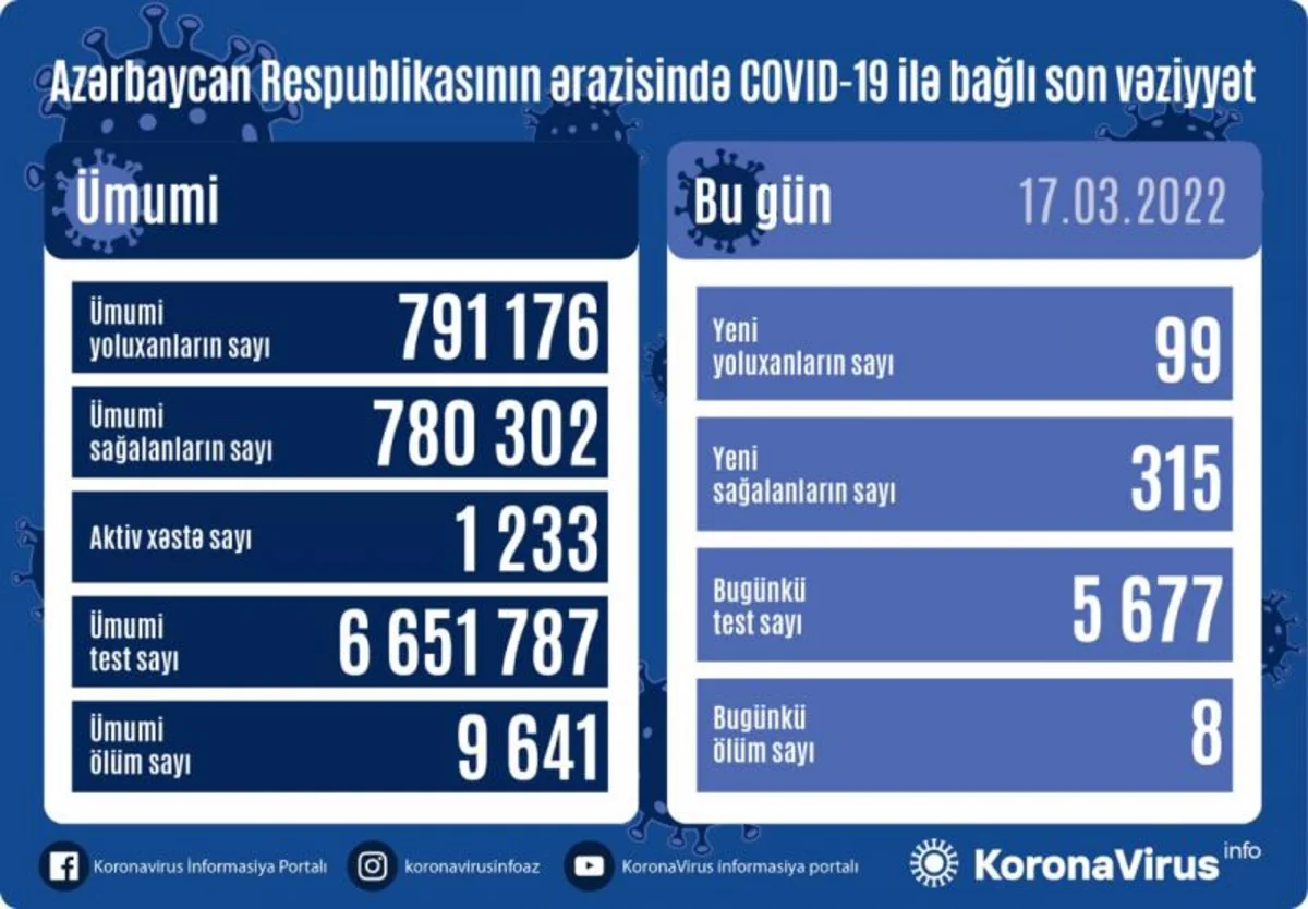 Azerbaijan confirms 99 new COVID-19 cases, 8 died