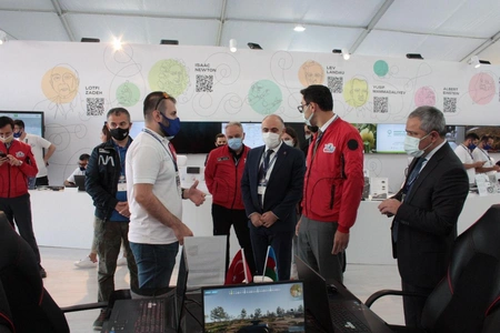 Gayibov got acquainted with the unmanned aerial vehicles produced by the Ministry of Defense Industry of Azerbaijan, pavilions of the Ministry of Communications and High Technologies, the Turkish Ministry of Youth and Sports, as well as startup projects developed by the teams of Azerbaijan Technical University and Baku Turkish Anatolian High School.
