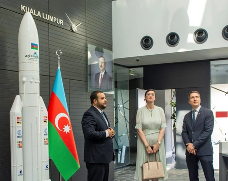 At the meeting, the guests were informed about the activities of Azercosmos, Azerbaijan's satellite projects, projects implemented through telecommunications and Earth remote sensing satellite, and future development plans. The importance of innovative solutions implemented through space and satellite resources in the direction of climate change, which is relevant today, was emphasized.
