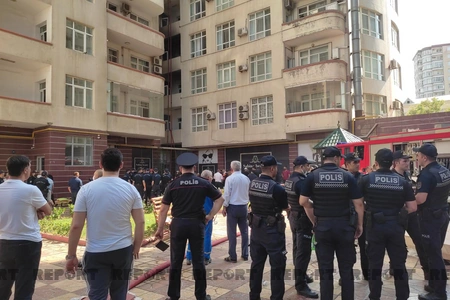 The 112 hotline of the Ministry of Emergency Situations (MES) received information about a fire in a sixteen-story residential building in the Narimanov district of Baku, Report informs.