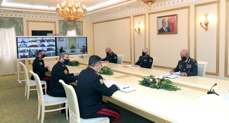 On May 26, the Ministry of Internal Affairs held an operational meeting through video conferencing on the upcoming tasks in maintaining public order and ensuring public safety during the international sports events - Formula 1 and 4 matches of the European Football Championship in Baku.