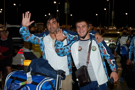 The first group of the delegation representing Azerbaijan at the First CIS Games arrived in Kazan, Russia last night.