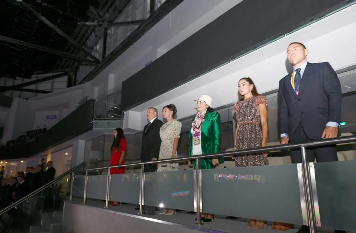 President of the Republic of Azerbaijan, President of the National Olympic Committee Ilham Aliyev, first lady, President of the Azerbaijan Gymnastics Federation Mehriban Aliyeva and family members attended the opening ceremony.