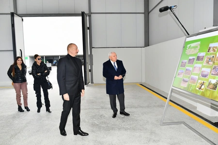President of the Republic of Azerbaijan Ilham Aliyev, First Lady Mehriban Aliyeva, and their daughter Leyla Aliyeva have viewed conditions created at the dried fruit production enterprise owned by Green Factory Limited Liability Company (LLC) in Orta Zayzid village, Shaki, Report informs, citing AZERTAC.
